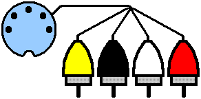 Achtung: Digital-RGB verwendet 0V/5V-Signalpegel, das heute üblicherweise genutzte Analog-RGB dagegen 0,7V-Pegel (Peak-to-Peak). Beim Kombi-Monitoranschluss am QL fiel mir schon kurz nachdem ich ihn gekauft hatte, auf, dass es dort - neben den RGB-Anschlüssen - ZWEI getrennte Composite-Video-Ausgänge gibt. Das hat folgenden Grund: die vier Farben bzw. acht Farben des QL sehen zwar auf einem Farbmonitor sehr schön aus, bei der Wiedergabe auf einem monochromen Monitor haben jedoch manche von den Farben sehr ähnliche Helligkeiten und sind dann nur noch schwer zu unterscheiden. Daher gibt der QL zwei getrennte Composite-Video-Signale aus, eins für Farbmonitore und eins für Monochrom-Monitore - im letzteren Signal erscheinen die verschiedenen "Farben" als GLEICH-abgestufte Helligkeitswerte und sind dann gut voneinander zu unterscheiden. Übrigens habe ich meinen QL auch einmal erfolgreich an den Digital-RGB-Monitor angeschlossen, der an der CGA-Graphikkarte meines IBM PC XT lief (habe leider den Hersteller und Typ des Monitors vergessen), und dabei fiel mir auf, dass an diesem Monitor hinten ein Umschalter für das Synchronsignal (positiv - negativ) vorhanden war - und siehe da, der QL benötigte tatsächlich genau die andere Schalterstellung als der IBM ! Wie ich danach in der Bedienungsanleitung des Monitors lesen konnte, war damals offenbar die CGA-Graphikkarte des IBM PC der "Exot", denn genau für diese war der Schalter extra eingebaut worden, die anderen "normalen" Computer scheinen damals wie der QL synchronisiert zu haben ... Praktischer Tipp zum Anschluss des QL an einen Videomonitor oder Fernseher: Anstelle der damaligen Originalkabel kann man auch ein etwas moderneres Kabel mit einem 5-poligen DIN-Rundstecker auf der einen Seite und 4 Cinch-Steckern auf der anderen Seite verwenden. Der 5-polige DIN-Stecker passt in den Kombi-Monitoranschluss des QL, und wenn man den gelb gekennzeichneten Cinch-Stecker in die gelbe Video-Eingangsbuchse des Monitors oder Fernsehers steckt, bekommt man das Graustufenbild, wenn man den schwarz gekennzeichneten Cinch-Stecker hineinsteckt, das farbige Bild. Umso kürzer das Kabel ist, und umso besser es abgeschirmt ist, desto besser die Bildqualität. ![]() ![]() DISCLAIMER: Alle Angaben auf dieser Seite erfolgen nach bestem Wissen, jedoch ohne Gewähr. Dies ist eine nicht-kommerzielle Fan-Website © 2014-2015 Elmar Dünßer (Duensser) | ||||||||||||||||||||