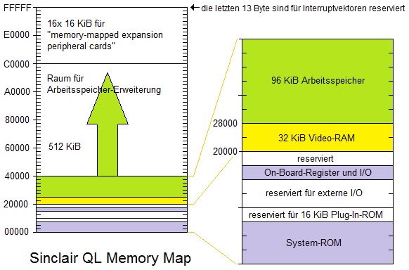 Wenn man sich die Memory-Map des QL ansieht, fallen zwei weiße und damit zunächst leere Bereiche besonders auf: