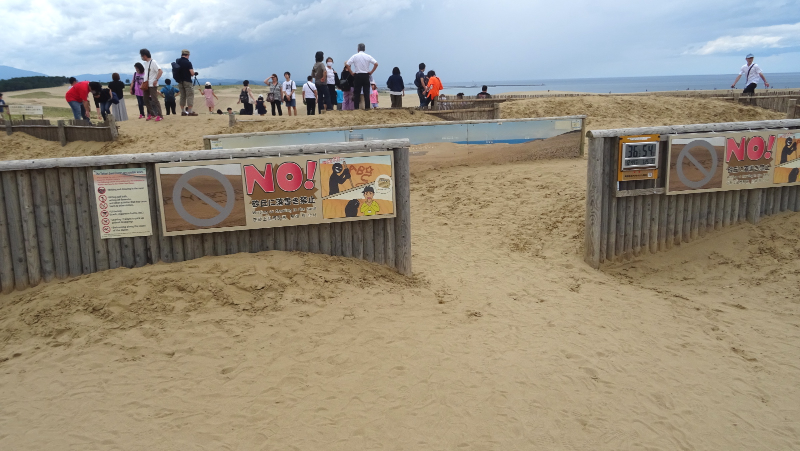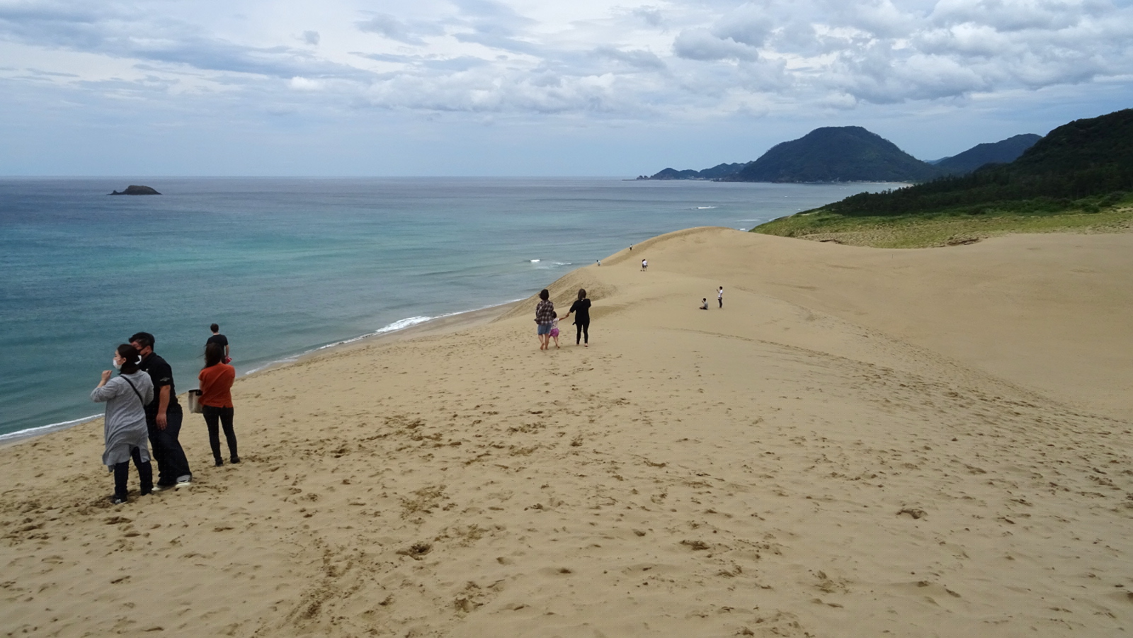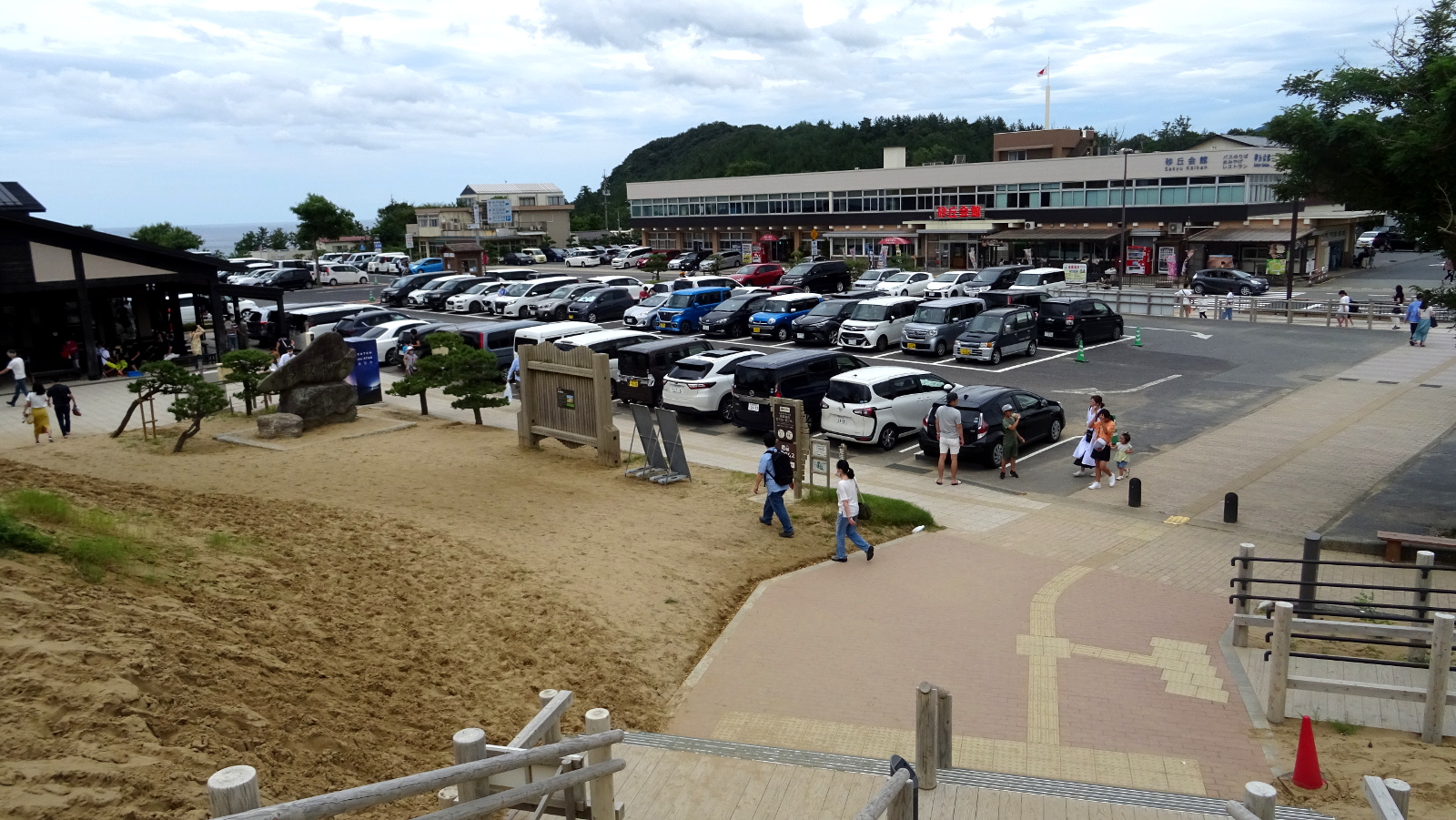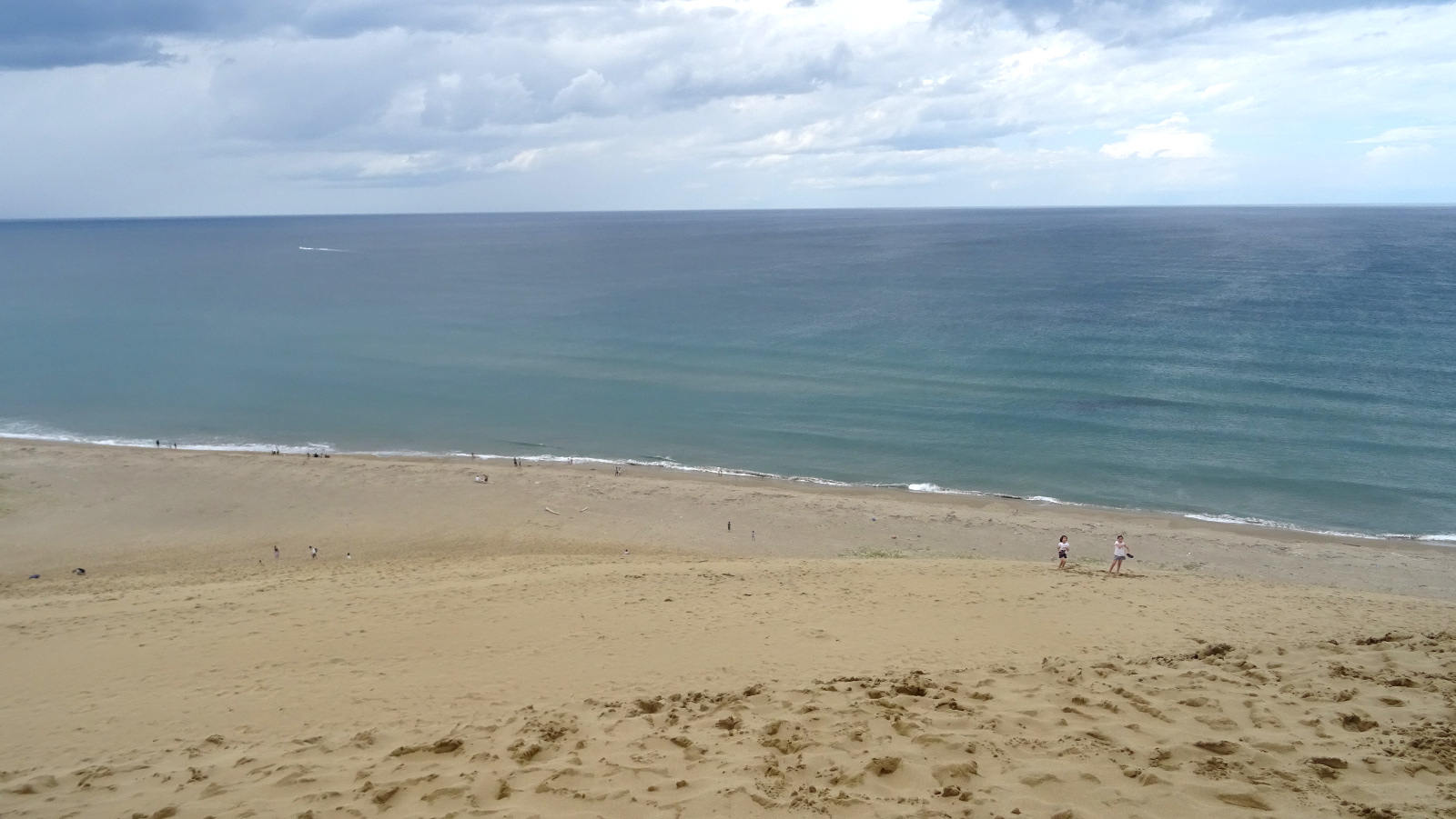 Blick hinunter zum Japanischen Meer. Man beachte, wie klein die Menschen unten am Strand aussehen. Ich stehe hier ja auch ca. 70 Meter über dem Meer.