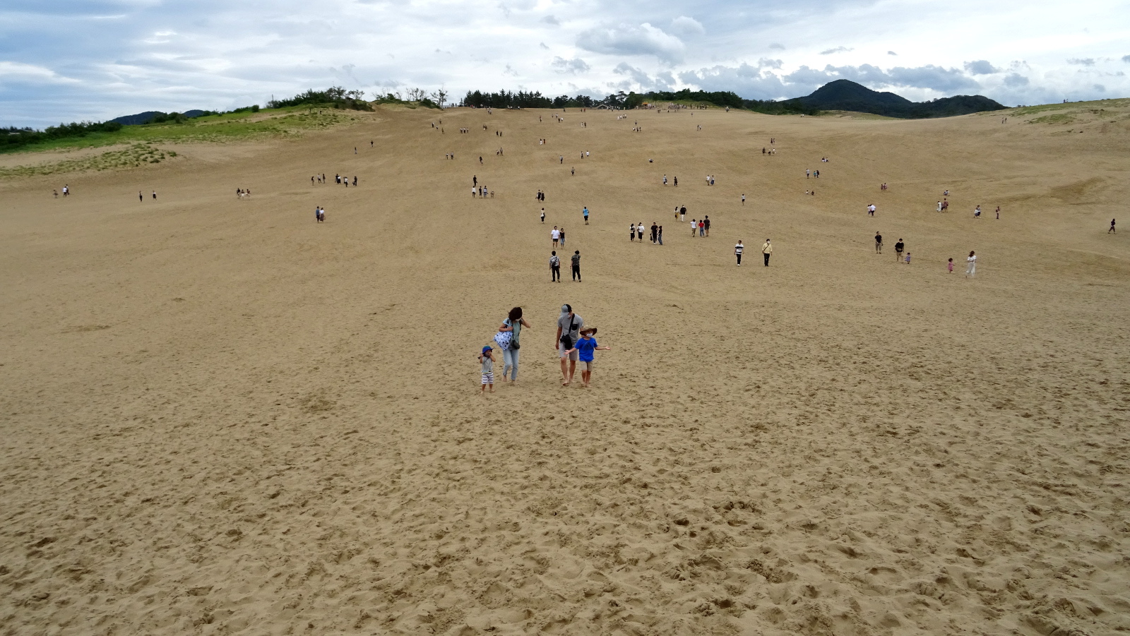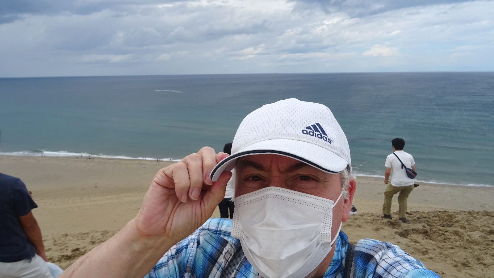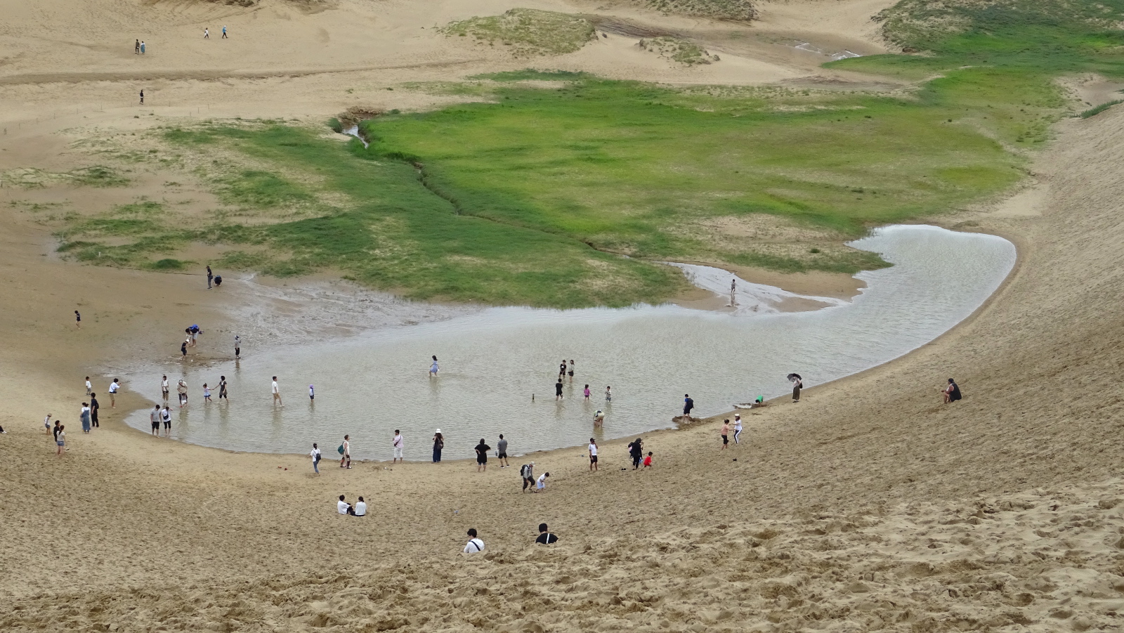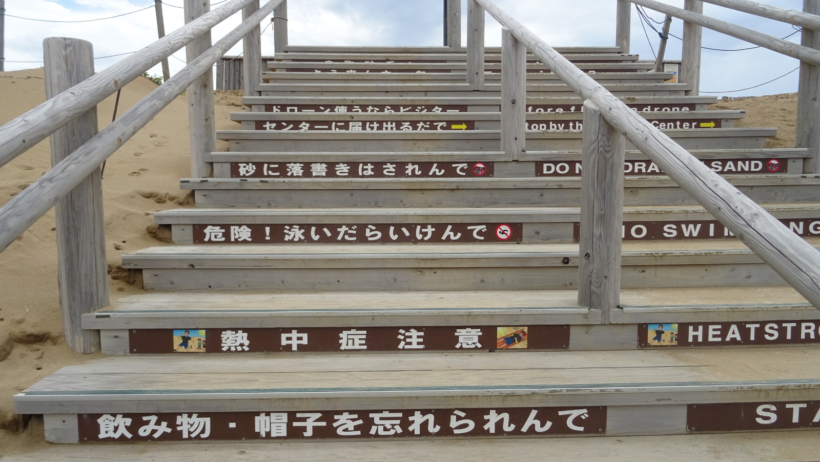 Blick hinunter zum Japanischen Meer. Man beachte, wie klein die Menschen unten am Strand aussehen. Ich stehe hier ja auch ca. 70 Meter über dem Meer.