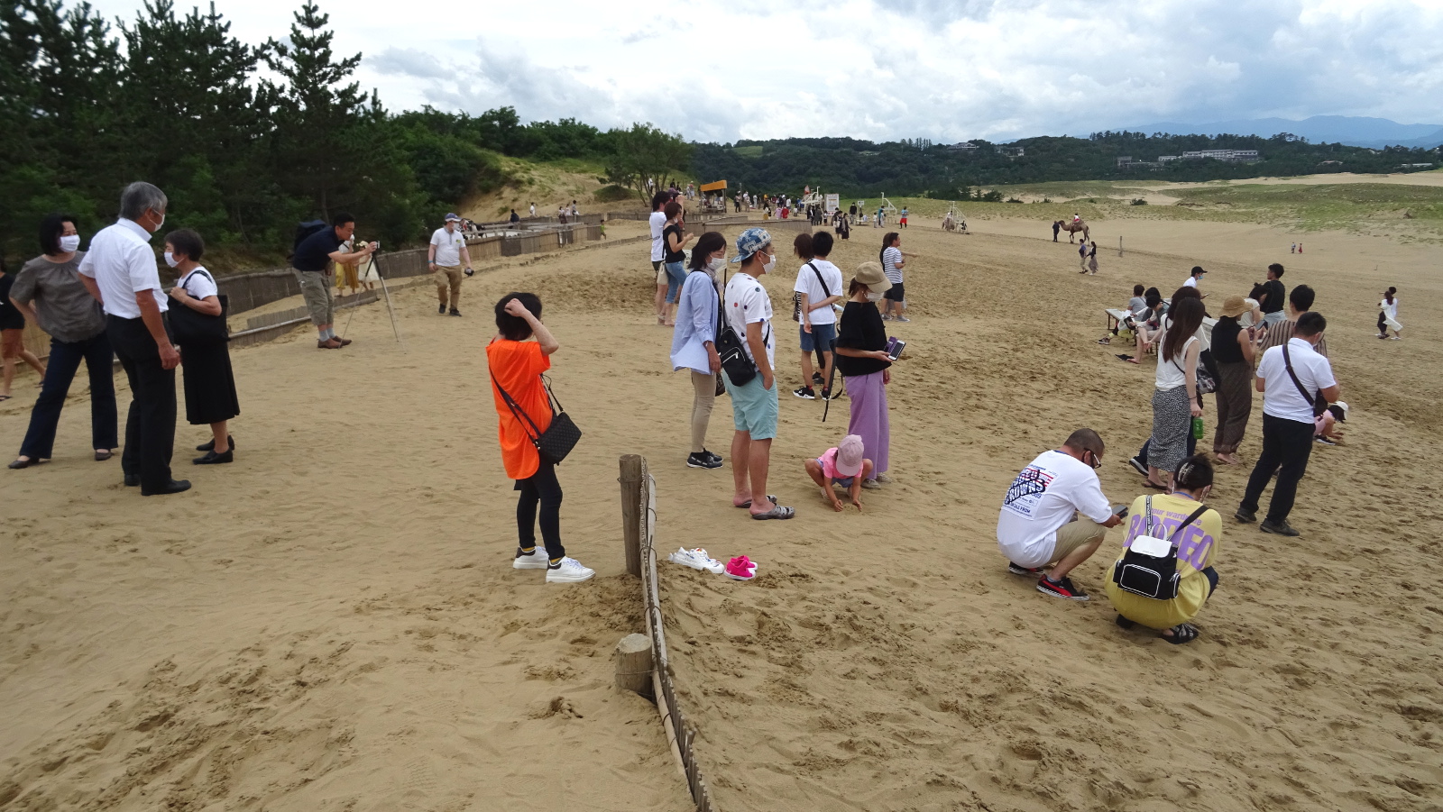 Am Samstag, den 25. Juli, war sogar der gebührenpflichtige Parkplatz neben den Touristenzugängen zu den Dünen ziemlich voll.