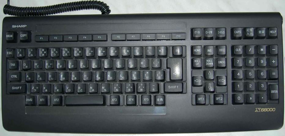 Das Keyboard des X68000 hat 113 Tasten, zum Teil mit Spezialfunktionen für die Japanisch-Eingabe |