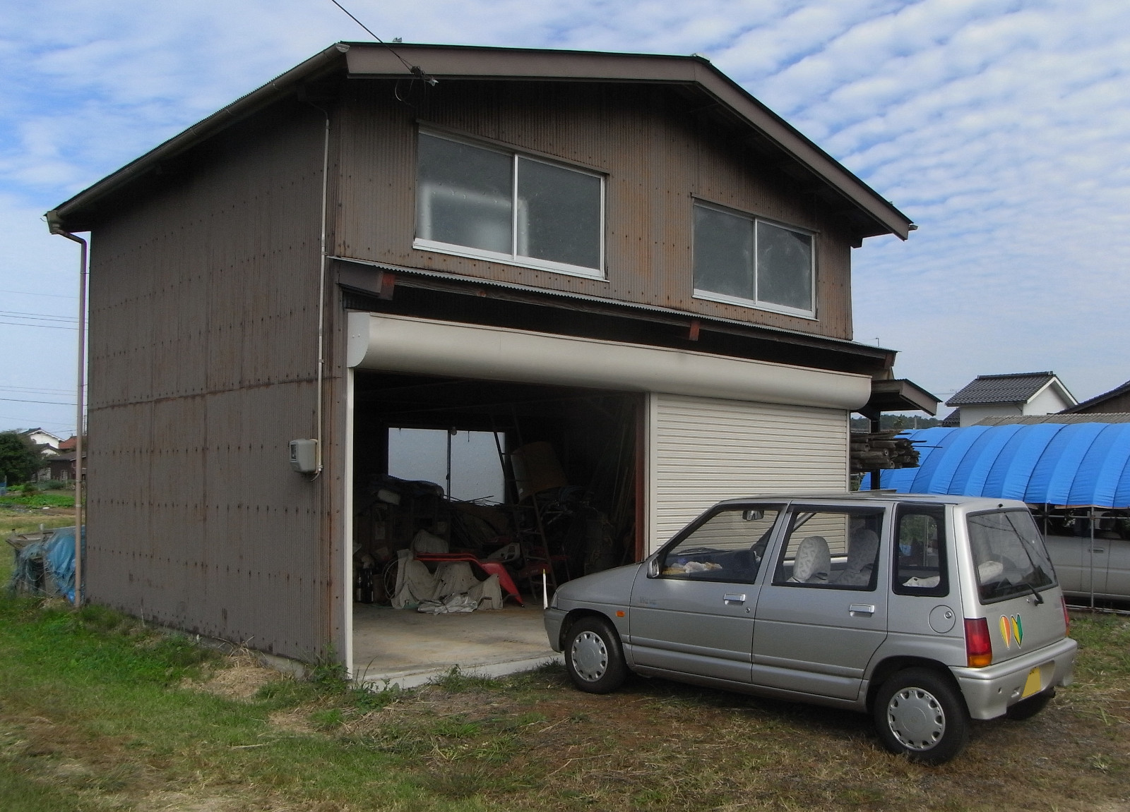 Hier vor dem erdbebenfesten Schuppen (Stahlrohrbauweise) meiner Schwiegereltern, der auch als Garage diente.